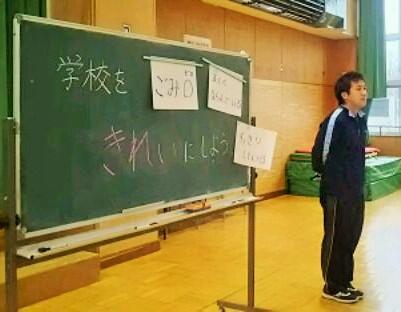日直の先生からは,「学校をきれいにしよう」という今週の目標が話されました。