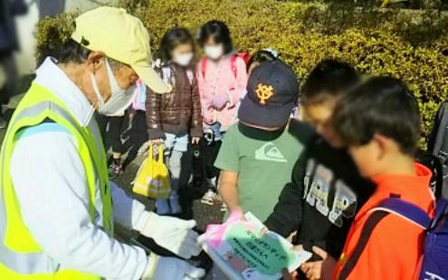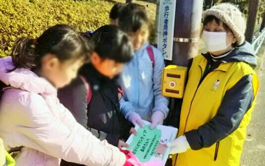 毎朝,校門前の横断歩道で子供たちの安全を見守っていただいているお二人に