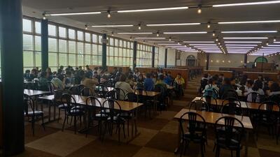 当初はリフトで上がったところで昼食の予定でしたが、昨日の降雨で地面が湿っておりましたので、食堂をお借りしました。昼食をおいしくいただきました。