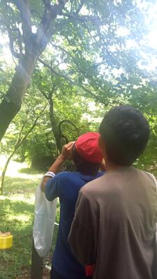 木の葉のわずかな揺れに気付き、鳥の存在に気付いた子がいます。