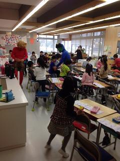 本日の5時間目に「マミーシンガーズ」の皆様による道徳劇「どんぐりと山猫」を鑑劇しました。