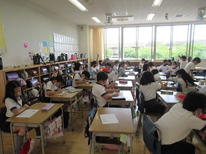 昼休みに集会委員会によるレク集会がありました。放送でアナウンスされる数字に一喜一憂しながら「ビンゴゲーム」を楽しみました。「リーチ!」「ビンゴ!」など各教室から嬉しそうな声が聞こえてきました。