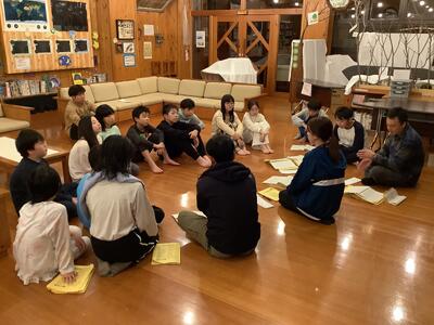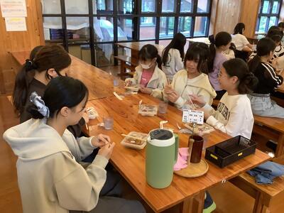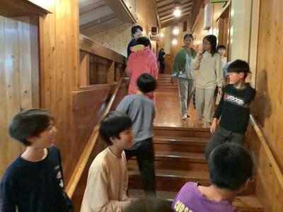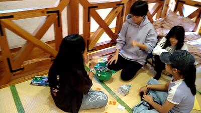ナイトハイクと星空観察を終えました。検温、お風呂、振り返りタイムです。疲れも見せず楽しそうです。