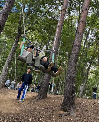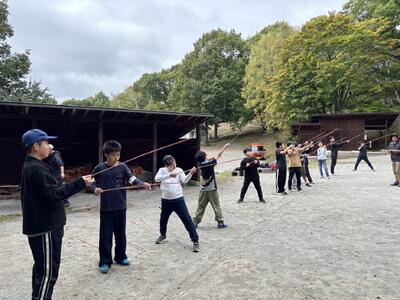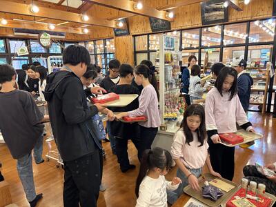 かや飛ばし、森遊び、部屋遊び、お土産購入の4つのローテーションでアクティビィを楽しんでいます。