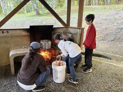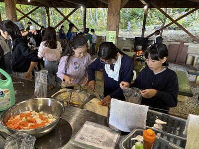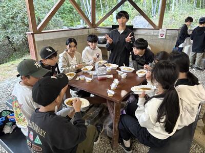 カレー作りが進んでいます。各班、みんなで協力して美味しそうなカレーを作っているのでカレーコンテストは審査員を悩ませそうです。