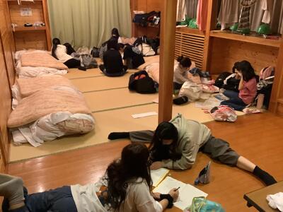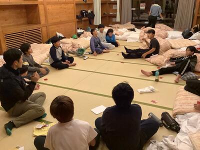 室長会議をしました。寝る支度を済ませ、思い思いに過ごしています。テンション高めの人が多く、寝てくれるのか心配です…。笑