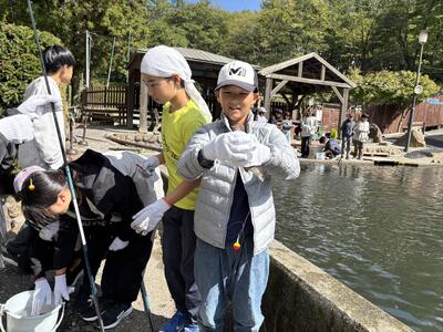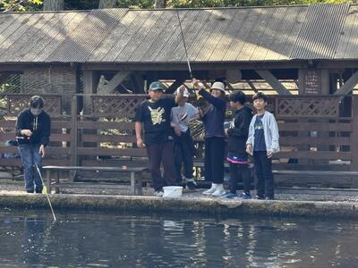 魚釣り体験です。少しずつ釣れ始めています。