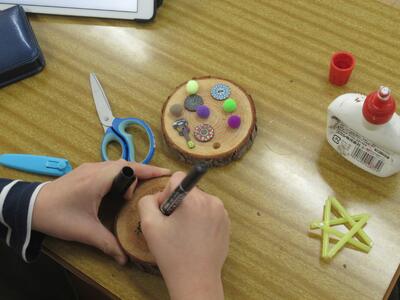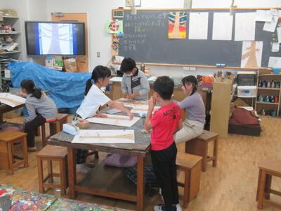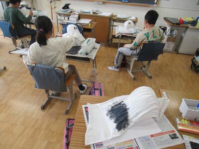 5年生 図工では「花のランプシェード」の制作が進んでいます。土台が完成しつつあります。