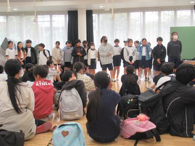 5年生 音楽集会では明日パルテノン多摩で披露する合唱と合奏を発表しました。仕上がりはバッチリです。6年生の代表から感想とエールをもらい、明日への気持ちをより高めました。