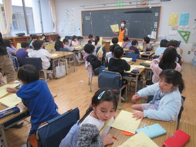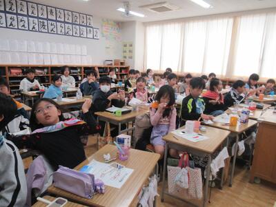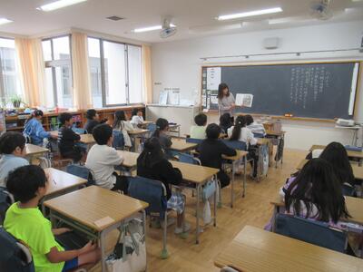 4年生 朝読書の時間にクプカシスターズによる紙芝居アクトがありました。毎月ありがとうございます。