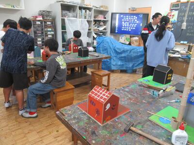 6年生 図工では「オリジナルハウス」の制作を進めています。