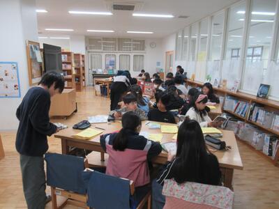 3年生 図書室では借りる本を真剣に選んでいました。
