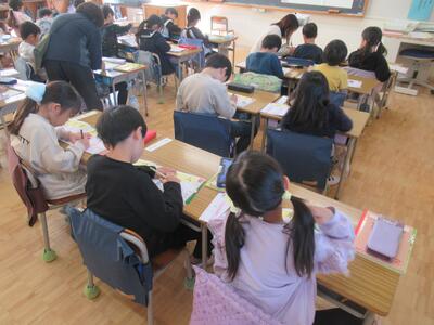 1年生、漢字のテストをしています。