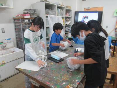 3年生 図工では「にじいろモンスター」の制作が進んでいます。