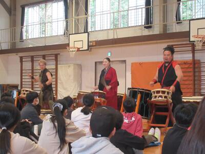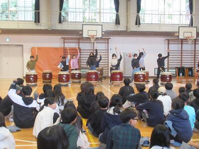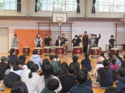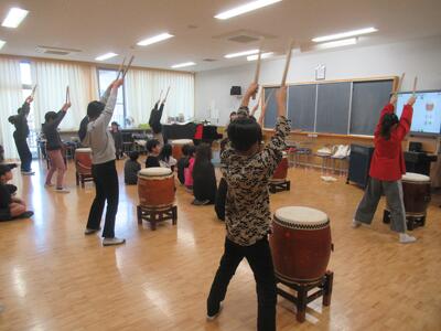 6年生 音楽では和太鼓の練習を行いました。