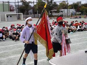 いよいよ運動会の週になりました。今日は朝から快晴で、運動をするには絶好の気候となりました。今日の1時間目は、運動会全校練習です。開会式の練習と応援合戦の練習でした。子供たちの集合も早く、話をしっかり聞けていたので、スムーズに練習が進みました。1年生や6年生の代表の子供たちも立派にできていました。全校で集まると一気に運動会の機運が高まります。運動会当日、天気もよさそうですね。皆さまのご来場をお待ちしています。本日、運動会ライブ配信のお知らせを配布しました。ご確認ください。