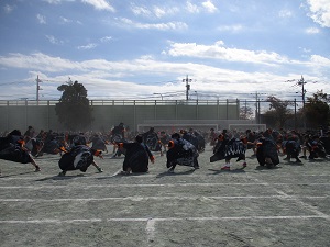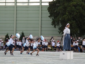 様々な対応が入り、今日はあまり写真が撮れませんでした。唯一写真を撮れたのが、3年生と5・6年生の練習の様子です。3年生は隊形移動も上手にこなし、仕上がってきたなという感じがしました。5・6年生は合同練習です。2学年が揃うと迫力が違います。腰をがっちり落とし気迫を感じられるようになってきました。子供たちも先生たちも、疲れがたまっています。土日にしっかり休んで来週に備えてほしいです。現在の天気予報では、土曜日の天気はよさそうです。たくさんたくさん努力した成果を、たくさんの保護者の皆さまに見ていただきたいと願っています。