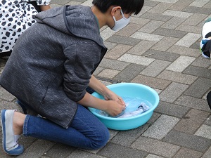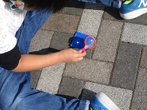 最近は雨が少なく、学習をするにはちょうどよい気温の日が続いています。外が気持ちよく、外での学習の様子をご紹介します。前半の3枚は、3年生の理科の学習。虫メガネを使って太陽の光を集めます。焦点が絞られると熱が凝縮し、髪を燃やすほど熱くなります。3年生の子供たちは巧みに虫メガネを傾けたり近づけてみたりして、焦点を合わせようとしていました。たくさんの子が紙に焦げをつけることができました。後半3枚は6年生の洗濯の学習です。もちろん家庭では洗濯機を使っていると思いますが、家庭科の学習では、手洗いの方法を学びます。もみ洗い、つまみ洗い、押し洗いなど、上手にごしごしやっていました。汚れがひどく洗濯機では落ちない汚れに役立ちそうです。家庭でも実践を!