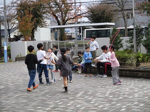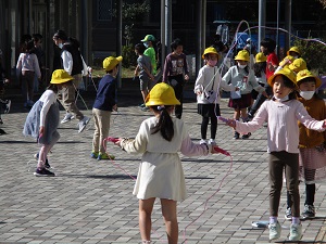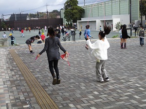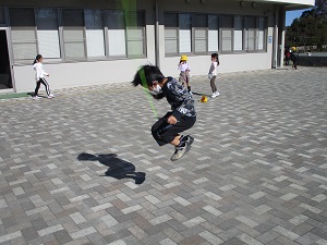 今日は昨日とは打って変わって昼間は暖かくなりました。外で元気いっぱいに遊ぶ子供たち。日向ぼっこをする子も。なわとび月間が始まり、なわとびをする子供たちが多くいました。コスモスがきれいに咲いています。算数の岸上先生も子供たちと一緒に大なわを楽しんでいました。二重跳びをがんばる子、かっこいい1枚が撮れました。