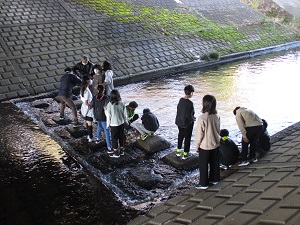 6年生の総合的な学習の時間、再生可能エネルギーの取り組みです。太陽光、風力、水力による発電に挑戦している6年生。今日は、水力発電のグループが大栗川での発電に挑戦です。朝8時に学校に集合し、大栗川へ向かいました。教育委員・再エネアドバイザーの小林さん、多摩市教育委員会から指導主事の先生も来てくださいました。幸い二小は、学校からすぐのところに大栗川があり、さらにちょうどいい窪みもあり、発電をするにはもってこいの場所があります。子供たちは、自分たちが改良を重ねてきた装置を使って発電をすることに、期待と喜びを感じているようです。当面の目標は、12月10日(土)に行われる予定の「聖蹟桜ヶ丘イルミネーション点灯式」への参加です。準備を重ね、立派にメッセージを発信してほしいと願っています。最後の2枚は、4年生のブラッシング指導の様子です。歯科校医の先生にお越しいただき、なぜ歯磨きが必要か、正しい歯磨きの仕方などを教えていただきました。正しい歯磨き習慣の一助になればと思います。ご家庭でもぜひ話題にしてみてください。よろしくお願いします。