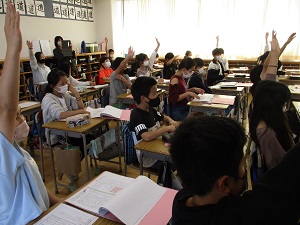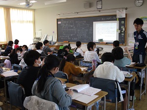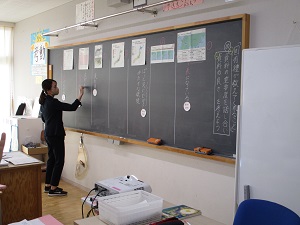 5年3組伊東先生の研究授業の様子です。今日は教育委員会の指導主事の先生もいらっしゃりご指導を受けました。国語の説明文に挿入されているグラフや地図、表などの資料の重要度を話し合いNo.1を決めるという内容です。その話し合いや根拠となる理由を明確にすることで、資料のもつ役割や利点に気付くことが目標になります。子供たちはとても活発に発言し、友達の意見に耳を傾け、一生懸命に取り組んでいました。指導主事の先生からも学級経営のよさや研究を重ねてきた指導の流れの成果など、お褒めの言葉をいただきました。力を付けてきている5年生。まだ早いですが、どんな最高学年になるのか今から楽しみです。