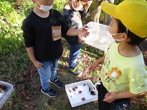 今日はとても暖かくなりました。朝と晩、昨日と今日とでの気温差が激しいです。皆様、体調を崩さないようお気を付けください。前半4枚の写真は、2年生の算数。2年生の最重要課題である九九の学習です。唱えるだけでは飽きてしまうので、今日はビンゴゲーム形式で楽しみながら習熟を図りました。学級全体で、友達とペアで、2~3つの段の九九を使って等々、いろいろなパターンで行いました。家でもやってみたいとの声が上がっていたので、お家での九九ビンゴゲームにお付き合いください。どうぞよろしくお願いします。後半4枚は、にじ組1年生の生活科「あきとなかよし」の学習です。雑木林、下校庭回り、並木公園に行き、ゆっくり秋を見付けてきました。収穫したどんぐりや高揚した葉っぱは、この後おもちゃに大変身でしょうか?ゆっくり時間が流れた4時間目でした。