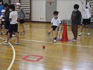毎年実施している読売巨人軍の「ジャイアンツアカデミー(野球教室)」が行われました。4年生を対象に実施しています。4名のコーチの方がお越しくださり、ボールの扱い方や投げ方を教わり、ボールを投げて走る、ボールを捕って投げるだけでできるゲームを楽しみました。慣れない子供にとってはハードルの高い野球ですが、コーチの方々に上手に盛り上げていただき、楽しむことができました。高学年になると、ベースボール型ゲームを体育でも行います。その学習につながるといいですね。