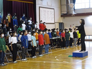 2月も後2日になりました。しばらく寒い日が続いていましたが、明日から数日は4月の暖かさになるようです。寒暖差で体調をくずさないようお気を付けください。学校では、今週の木曜日に迫った「6年生を送る会」へ向けての練習に、どの学年も一生懸命に取り組んでいます。最初の写真は、1年生。その後教室を回ると、2年生は音楽の授業(交換授業でした。)、6年生はテストに取り組むところでした。次の時間の体育館は、主役の6年生。さすがの演奏でした。凛々しい6年生の姿を目に焼き付けておきたいと思います。最後の写真は、にじ組です。1~6年生が混ざった中での演奏は難しそうですが、がんばっていました!本番が楽しみです!