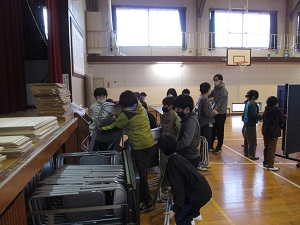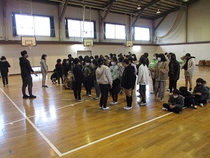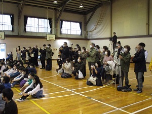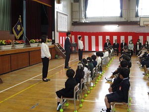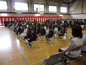 今日はとても暖かくなり、今週はしばらく暖かい日が続くようです。例年になく暖かくなる日が多いため、狂い咲きする桜もちらほら出ているようです。また、桜の開花が早まり、卒業式の時に満開になんてことがあるかもしれません。暖かい空気に包まれて、外遊びや体育は、とても気持ちよさそうでした。元気いっぱいに体を動かし、これまでの寒さで縮こまった体をぐーっと伸ばしてほしいと思います。体育館に集合しているのは、6年生。いよいよ今日から卒業式練習が始まりました。卒業式へ向けての心構えや細かいことを、これからじっくり練習していきます。6年生の子供たちは、真剣な顔付きで話を聞き、背筋をピッと伸ばして練習していました。緊張感があり、とても立派な態度でした。