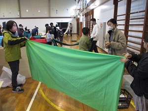 にじ組の体育の様子です。今年度人数が増え、大所帯になりました。今日の体育は、サーキットトレーニングのように、各コーナーを巡って様々な運動をするという内容でした。走る、跳ぶ、回す、バランスをとる…など、全身を使って運動に取り組みました。小さいうちから体の様々な部位を使って運動することや多様な動きに親しむことは、とても大切です。ゴールデンウィーク中も運動に親しむ機会があればいいですね。今日は、引渡訓練が行われました。これを機会に、お子様と避難の際の約束事を決めたり、防災備品などを点検したりする機会にしていただければと思います。参加してくださった保護者の皆様、ありがとうございました。
