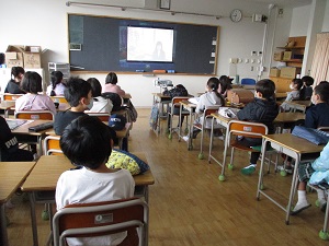 1年生の下校、荷物が重そうです。斜めからの陽光が子供たちを照らしていて、絵になるなあなんて思ってます。今日は、6年生のイベントデーでした。3・4時間目は、劇団四季による「こころの劇場」です。劇団四季が社会活動として小学校6年生を観劇に招待するというものです。本当なら劇場に出かけるのですが、コロナ禍なのでオンライン視聴です。演目は「人間になりたがった猫」。人間の温かさを感じられる名作です。画面が写っている写真を撮ることが禁止されているため、子供が観ている写真だけですみません。子供たちは、劇の世界にどっぷり浸かっていました。ぜひ、感想を聞いてみてください。そして、5・6時間目は、「薬物乱用防止教室」です。薬物の低年齢化は、社会問題になっています。小学生をターゲットにしている事例も本当にあるのです。6年生の子供たちは、これから中学、高校と進んでいきます。薬物についての正しい知識を身に付け、断る勇気をもてるよう願っています。