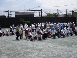 今週から運動会特別時間割が始まりました。運動会の練習割当に沿って校庭・体育館で練習がスタートです。3時間目は1年生の割当。ダンスの練習はこれまでも取り組んできており、校庭では位置決めを行っていました。1年生にとっては、間隔をあけて並ぶのは難しいのですが、先生の指示に通りに並ぶことが上手にできていました。並んだところで一度踊ってみます。ウェーブ、とてもきれいにできていましたよ。踊り終わったところで雨が……。外での練習は天候に左右されてしまいます。運動会まで天候に恵まれ、精一杯自分の力を発揮できるといいですね。ご家庭でも子供たちを励ましてあげてください。