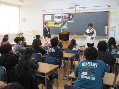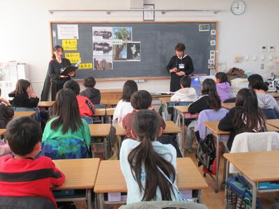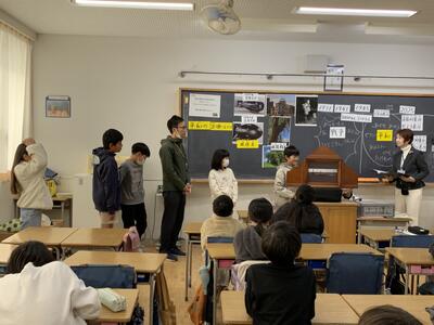 4年生 平和紙芝居サークル「クプカ」の皆さんによる平和紙芝居の実演体験を行いました。