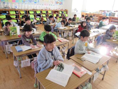 1年生 国語では物語文「たぬきの糸車」の音読をしました。上手に読めていました。