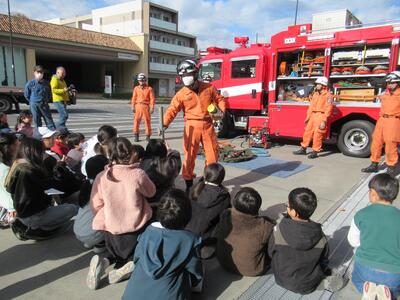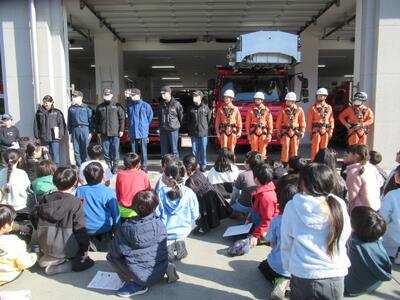 4年生 社会科見学で「多摩消防署」と「多摩ふるさと資料館」へ行きました。消防署では鉄パイプをつぶしたり、切ったりする様子を実際に見せていただきました。資料館では多摩の昔の暮らしについて詳しくお話を聞くことができました。