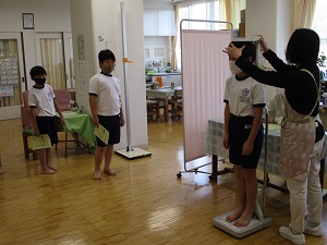 今日から1学期の発育測定が始まりました。昨年までは体育館で一斉に行っていましたが、二小の児童数もだいぶ減り、各学年ごとに保健室で行うことになりました。今日は3~6年生が行いました。小学生の身長・体重の伸びは著しいものがあります。一通りの健康診断が終わりましたら、カードを持ち帰りますのでご確認ください。写真が2枚しか撮れませんでした。(春はやることが多くバタバタです。ご容赦ください。)