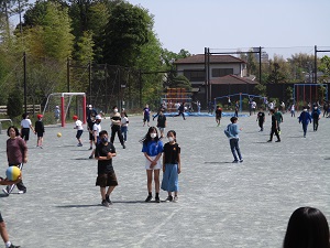今日はとても暑くなりました。まだ4月なのに、初夏のような気温です。中休みの子供たちは元気いっぱい。たくさんの子供たちが、外でたっぷり体を動かしていました。よーく見ると、先生たちも子供たちと一緒に遊んでいます。学校が始まってまだ一週間も経っていないのですが、すでに学級のまとまりができつつあります。たくさん関わってこそだと思います。学校の花壇は、花が満開です。PTCAの皆様による花壇、いつもありがとうございます。