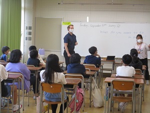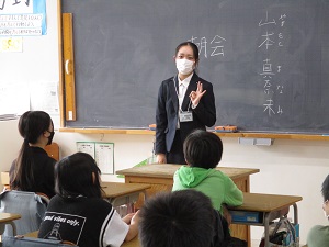 10月に入りました。まだまだ日中は暑い日が続いていますが、今秋の後半から涼しくなるようです。運動会練習も少しずつ始まります。体調を崩しやすい気候ですので、規則正しい生活を心がけるようお願いします。今日から教育実習が始まりました。立教大学4年生の山本真奈未さんです。主に5年2組に入ります。朝、放送の児童朝会であいさつした後、早速学級に入りました。緊張した面持ちでしたが、ばっちり自己紹介と抱負を話してくれました。また、子供たちからの好きな食べ物や芸能人などの質問に、はきはきと答えていました。今日から4週間の教育実習です。子供たちとたくさん触れ合い、授業実習を重ね、本当の先生になるための力をつけてほしいと願っています。