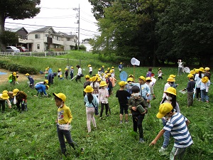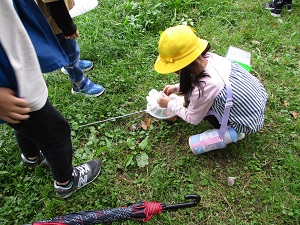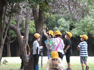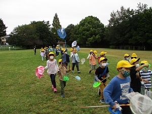 1年生が並木公園に虫とりに出かけました。雨が心配されましたが、降られることなく虫とりを楽しみました。また、並木公園は1週間ほど前に草刈りがされたばかりなので、たくさんはとれないだろうなあと思っていましたが、少し奥の草刈りがされていないところに行くと、たくさんのバッタや蝶がいました。つかまえるたびに歓声を上げる子供たち。中には10cmを超えるような大物をつかまえた子供もいました。雨が降り出す前に教室に戻り、じっくり観察できました。ぜひ、虫とりの様子をお子さんから聞いてみてください。今日からしばらくぐずついた天気になり、気温も下がるようです。寒暖差で体調を崩さないようお気を付けください。