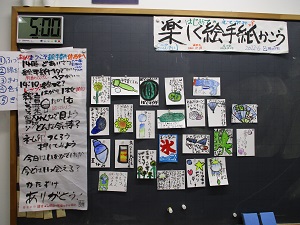 今日の放課後、希望者による絵手紙教室が行われました。講師は今年も日本絵手紙教室公認講師の山田みちよ先生です。残念ながら会議のため子供たちが実際に教わっているところや描いているところを見ることができませんでしたが、撮っていただいた写真を見ていると、何ともすてきな作品にびっくりしました。絵手紙独特の味わいが感じられます。子供たちとってもがんばりました!講師の山田みちよ先生、本当にありがとうございました。また、今回の絵手紙教室の開催には、本校地域学校協働活動推進員の井田さんのご尽力がありました。感謝申し上げます。今後ともどうぞよろしくお願いします。(参加した児童の保護者の皆様、下校が遅くなり大変申し訳ありませんでした。)