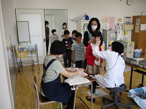 今日は、全学年対象の耳鼻科検診が行われました。耳→鼻→喉の順番に診ていきます。スムーズに向きを変える子供たちが多く感心しました。ゴールデンウィーク明けにはNAS聖蹟桜ヶ丘での水泳指導が始まります。疾患が見つかった場合は、早めに受診するようにお願いします。急に暑い日が多くなり、子供たちの様子を見ていると、体調がすぐれない子が増えてきた印象です。新年度が始まり、環境が変わった緊張による疲れも出てきているのでしょう。ゴールデンウィークでは、体と心の疲れをとる日も設定するよう、ぜひお願いします。