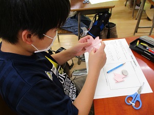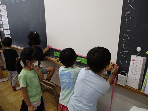 写真が少なくてすみません。にじ組1年生、国語「やくそく」の授業の様子です。カタカナの学習の後、全文を読み、あおむし達がした「やくそく」を読み取ります。いろいろな意見が出る中、家族や仲間を思いやる発言がたくさん出ました。みんな優しい!書けるようになった文字も増え、温かい雰囲気の中で楽しく学習し成長していることを実感できました。