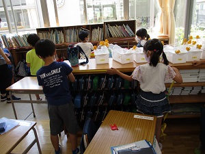 記録的な速さで梅雨が明け、連日猛暑となっています。昨日、今日の暑さ指数は運動中止の危険レベルまで上がり、中休みの遊び、校庭・体育館での体育は、中止となりました。特に今日の暑さはひどく、昼休み前に測定したところ校庭の気温は40.8℃!!!子供たちの下校と重なっていたので、水分を摂ってから学校を出ること、マスクを外して下校することを指導しました。写真は、3年生理科「ゴムや風の力」の学習です。ゴムで車を走らせ、引き具合によって変わる距離を測定していました。教室で軽く体を動かしているのは1年生。校庭・体育館が暑くて使えないため、冷房かけた部屋で行っていました。4年生は社会科のまとめです。自分のノートに自分の考えや学んだことを整理していました。6年生は、算数のテスト。こっそり「難しい?」と聞いてみると「うん。うん。」と頷いていました。いい点がとれるといいですね。図書室で読み聞かせを聞いているのは、にじ組の4~6年生。とても落ち着いて聞いていました。最後の2枚は、1年生の朝顔です。見事に生長しつるがぐんぐん伸びています。毎朝たっぷり水やりをしていますが、あまりの暑さにややぐったり気味でした。明日も暑くなりそうです。今日の疲れを明日に残さないよう、早く休むようにしてください。