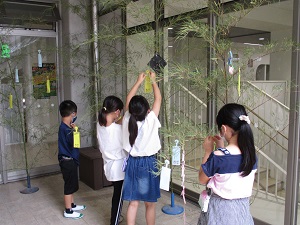 土曜日にPTCA役員の方々が、七夕飾り付け用の笹を準備してくださいました。短冊は、全校に配布されています。一番に願い事を書き、笹につけに来たのは2年1組の子供たち。嬉しそうに自分の短冊をつけていました。願い事が笹いっぱいになり、子供たちの想いで溢れるといいですね。PTCA役員の皆様、ありがとうございました。後半4枚は、中休みの校庭の様子です。先週は暑さのため、全ての中休み、昼休みの外遊びと校庭での体育が中止になりました。そして、今日!やっと外遊びができました!一目散に校庭に出る子供たち。待ちに待ったという感じでした。この後、台風が接近するとの予報が出ています。5年生は明日から八ヶ岳集団宿泊です。台風がそれることを願うばかりです。皆さん、テルテル坊主に願いを!