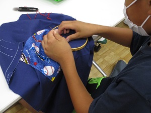 6年生の家庭科の様子です。マイバックの製作中です。今日は、ほとんどの子が飾りの刺繡に取り組んでいました。細かい作業にぐったりしている子もチラホラ。でも、みんな根気よく作業していました。校長先生が見に来ていて、やり方を教わっている子もいました。製作中の作品を見ていると、どの子の作品も個性が出ていて素敵でした。完成が楽しみですね。