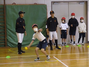 毎年実施している読売巨人軍の「ジャイアンツアカデミー(野球教室)」が行われました。4年生を対象に実施しています。4名のコーチの方がお越しくださり、ボールの扱い方や投げ方を教わり、ボールを投げて走る、ボールを捕って投げるだけでできるゲームを楽しみました。慣れない子供にとってはハードルの高い野球ですが、コーチの方々に上手に盛り上げていただき、楽しむことができました。高学年になると、ベースボール型ゲームを体育でも行います。その学習につながるといいですね。