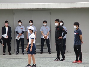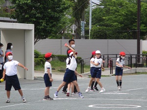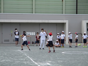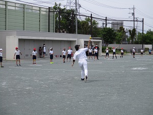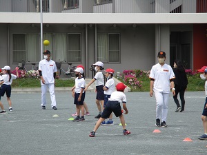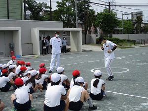 ゴールデンウィークが終わりました。(と言っても、明日、明後日は休みですが。)大型連休のためか、子供たちはし少し落ち着かないようでした。そんな中ですが、今年も4年生対象に読売ジャイアンツの野球教室(ジャイアンツアカデミー)が行われました。今回も「投げる」に焦点をあて、投げるコツをしっかり教わりました。肘を肩よりも高く上げること、体を回転させて投げること。何回も投げる練習をした後は、さっそくゲームです。打つことはせず、投げたボールが戻ってくるまでに何塁まで行けるかで得点が入ります。誰でもできる簡単なルールですので、子供たちは楽しみながら参加できました。サプライズが2つあります。写真を見て気づきましたか?なんと!TVでお馴染みのジャイアンツの大投手宮本和知さんが来てくださいました!宮本さんは、ジャイアンツアカデミーの校長先生をやられているようです。もちろん子供たちにも優しく声をかけ、アドバイスをしていただきました。もう一つのサプライズは、帽子です。2年前のジャイアンツアカデミーで全校児童の分をいただきました。もらえるのは一度だけなのですが、今回デザインが変わり新調されたので、再度全校児童分いただけることになりました!(太っ腹!)後日学校に届きますので、もうしばらくお待ちください。