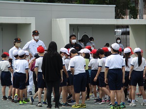 今日は今年度2回目の避難訓練がありました。火災想定の避難訓練です。火災の際は煙を吸わないようにするために、ハンカチで口を覆います。マスクをしているとはいえ不十分なので、マスクの上からハンカチで口を覆うのが理想です。今日から1年生が避難に参加しました。いつもよりも多少時間がかかりましたが、訓練を重ねていくうちに時間が短縮されるでしょう。「自分の命は自分で守る。」一番の基本です。お子さんに避難訓練の様子を聞いてみてください。