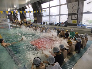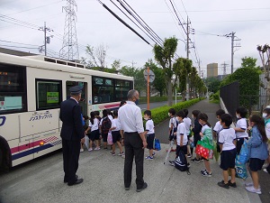 GWも終わり、日常の学校生活が戻ってきました。連休明けですが、今日からNAS聖蹟桜ヶ丘での水泳指導が始まり、1・2年生、にじ組の子供たちが行ってきました。学校の前までバスが迎えに来て出発です。帰りもバスで送ってくれます。至れり尽くせりの水泳の学習です。今日は、一連の流れを覚えるのが一番の目的なので、プールに入っている時間は短かったのですが、みんな口々に「楽しかった~!」と言っていました。次回からは、もっとたっぷり泳げるでしょう。教員にとっても初めてのことなので、様々な対応を想定してでの引率でした。事故なく充実した水泳指導となるよう、連絡を密にして行っていきます。