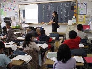 10月に入りました。まだまだ日中は暑い日が続いていますが、今秋の後半から涼しくなるようです。運動会練習も少しずつ始まります。体調を崩しやすい気候ですので、規則正しい生活を心がけるようお願いします。今日から教育実習が始まりました。立教大学4年生の山本真奈未さんです。主に5年2組に入ります。朝、放送の児童朝会であいさつした後、早速学級に入りました。緊張した面持ちでしたが、ばっちり自己紹介と抱負を話してくれました。また、子供たちからの好きな食べ物や芸能人などの質問に、はきはきと答えていました。今日から4週間の教育実習です。子供たちとたくさん触れ合い、授業実習を重ね、本当の先生になるための力をつけてほしいと願っています。